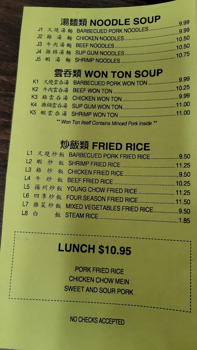 The soup selection is equally enticing, featuring comforting options such as beef topping wonton soup and shrimp noodle soup. Customers rave about the generous portion sizes and fresh ingredients, with dishes prepared to order for ultimate satisfaction.